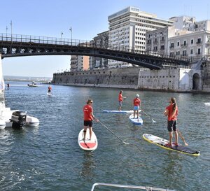 Ieri, nelle chiare acque di Porto Cesareo, si è svolto il Surf Meeting organizzato dal Circolo Nautico Approdo, un allenamento condiviso tra varie associazioni sportive pugliesi con simulazione di gara sup race e Paddleboard.